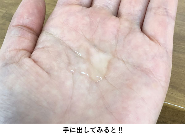 手に取ると、とろっとしたテクスチャで、少量でも伸びがよく、肌にグングン浸透していきます。肌に素早く馴染んだあとはベタツキやテカリもなく、 サラっとした使用感。